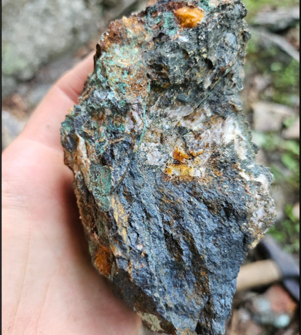 Figure 2: Maimann Lake area grab samples showing visible Chalcocite and Malachite
